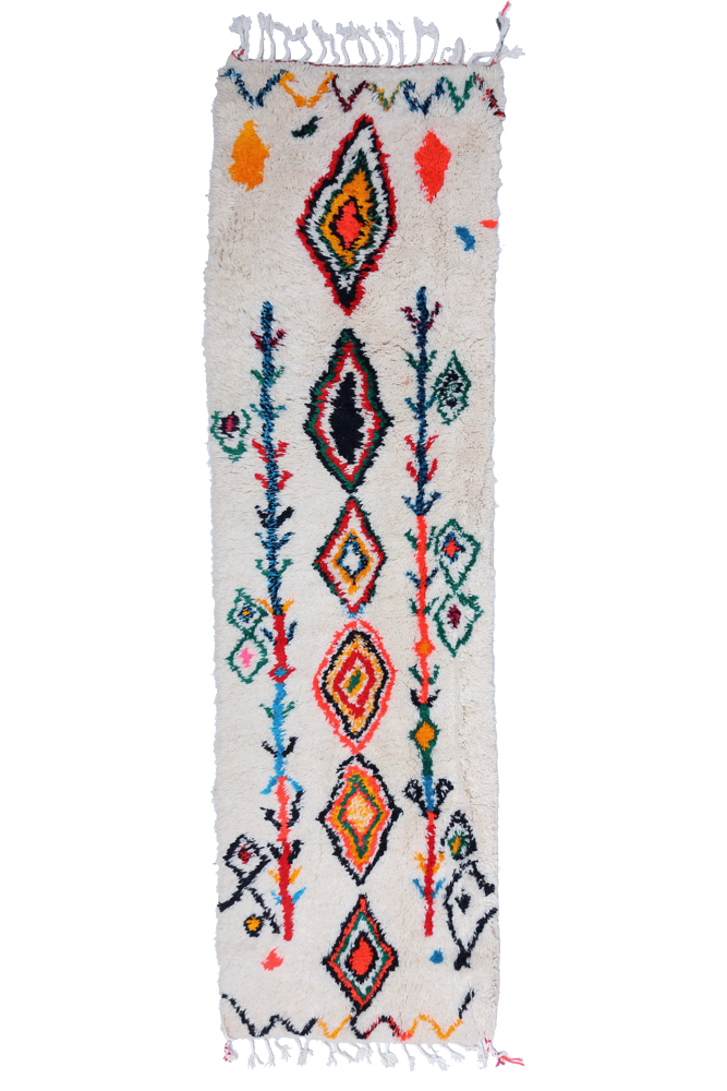 Les matériaux naturels utilisés par les tribus de l’Atlas du Maroc conviennent particulièrement bien à la fabrication de tapis de couloir berbère. Avec leur design élégant et intemporel, ces modèles en laine doux ou en tissus recyclés sont aussi résistants que confortables. Petit tapis, tapis moyen ou au tapis oriental XXL : décorez votre couloir selon le style souhaité et ses dimensions. Un tapis berbère losange égaye avec ses motifs colorés pour créer une pièce de passage ou d'accueil agréable. Un jeu de couleurs et de textures avec une superposition de tapis permet également de donner un esprit bohème chic à la pièce ! Agencez ensuite le tout avec un petit tabouret, un pouf oriental, un meuble de rangement ou encore des végétaux et plantes. Quelques étagères permettent aussi de disposer des objets de décoration pour plus de praticité malgré le manque d'espace. Tous les tapis sont tissés à la main par les femmes marocaines des tribus de l'Atlas pour sublimer votre intérieur.