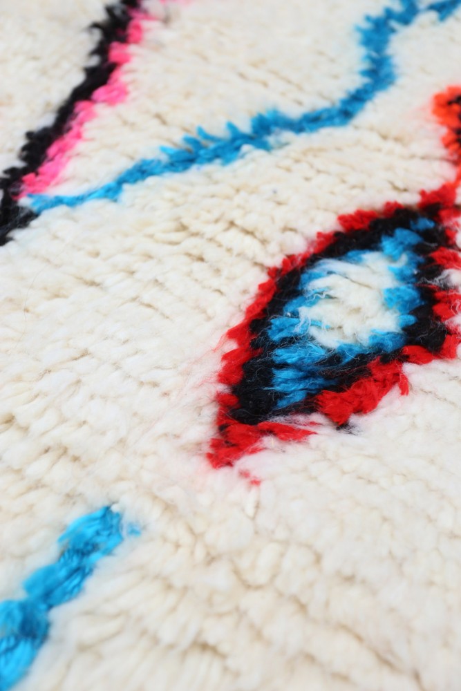 Azilal Teppich aus Schafwolle, handgefertigt auf einem traditionellen Webstuhl in den Bergen des Atlas in Marokko.