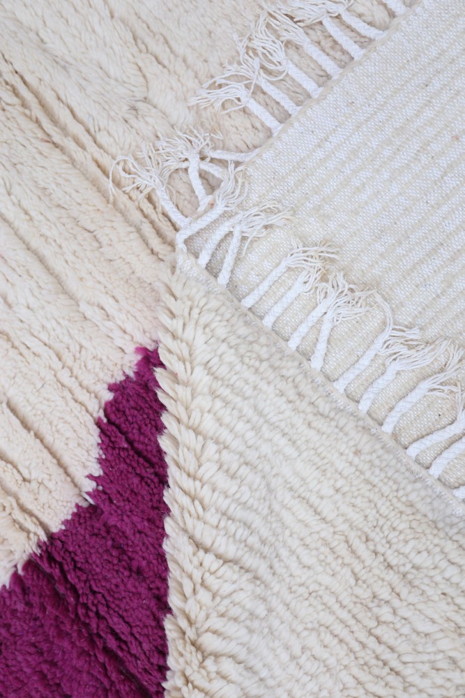 Azilal-Teppich aus Schafswolle, handgefertigt auf einem traditionellen Webstuhl in den Bergen des Atlasgebirges in Marokko.