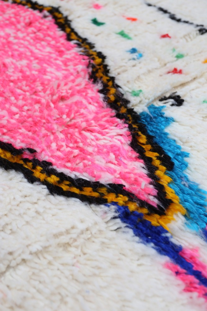 Azilal-Teppich aus Schafwolle, handgefertigt auf einem traditionellen Webstuhl in den Bergen des Atlasgebirges in Marokko.