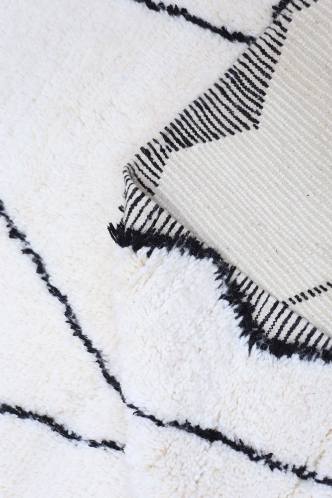 Béni Ouarain Teppich aus Schafswolle, handgefertigt auf einem traditionellen Webstuhl in den Bergen des Atlas in Marokko.