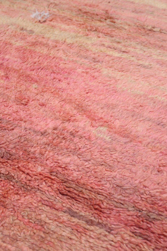 Dieser Berber-Teppich, genannt Azilal, stammt aus der Region Azilal in Marokko, wo er auf einem traditionellen hölzernen Webstuhl handgefertigt wurde. Seine Muster spiegeln die Stimmungen, Lieben und Leiden der Weberin zum Zeitpunkt seiner Entstehung wider. Nach der Erstellung dieses farbenfrohen Berber-Teppichs wird sie einen völlig anderen Teppich anfertigen, je nach ihren aktuellen Emotionen. Jedes Stück ist also einzigartig.