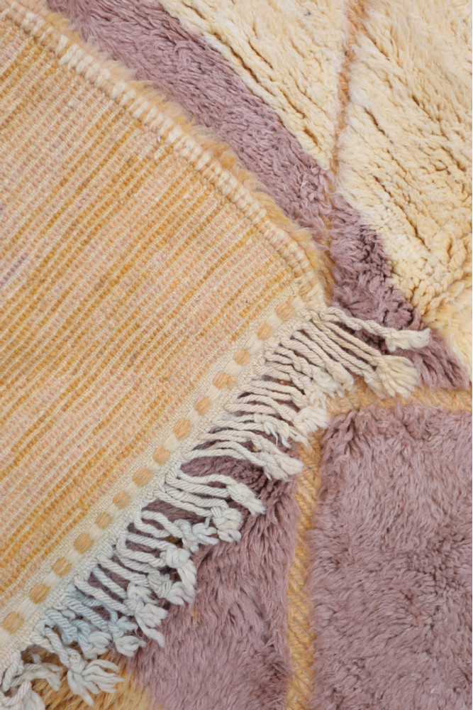 Handgefertigter Boujad-Teppich aus Wolle, hergestellt auf einem traditionellen Webstuhl in den Bergen des Atlasgebirges in Marokko.