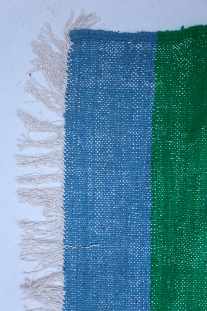 Unsere Teppiche mit weißem Hintergrund und bunten Designs haben immer einen weißen Wollhintergrund. Die Farben können entweder aus Baumwolle oder Wolle sein. Sehr lebendige Farben sind in der Regel aus Baumwolle und die Farben, die natürlicher wirken, sind aus Wolle. Unsere komplett bunten Teppiche bestehen zu 100 % aus Wolle.