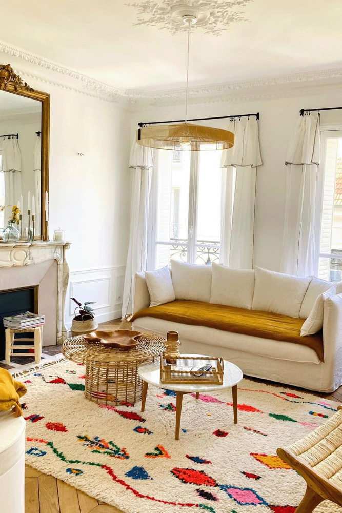 The Moroccan carpet originates from the ancestral Berber art: it is woven or handmade by women from the Atlas tribes, using sheep's wool, cotton, or recycled fabric. The carpets from each Berber tribe are recognizable as they all used their own expertise to create unique carpets. Pure wool carpets, recycled fabric carpets, shaggy long-haired carpets,Berber hallway rugThis doesn't seem to be a complete sentence in French. "Ou" means "or" in English. If you provide more context or additional information, I'll be happy to help with a translation.Berber diamond rug You will definitely find a model that will seduce you thanks to the variety of designs of Moroccan carpets. The red Berber carpet allows you to bring a piece of Moroccan history into your home, going beyond aesthetics: these carpets are full of symbolism and positive omens for your household. This unique decorative piece is adorned with original colors and patterns for your utmost pleasure!