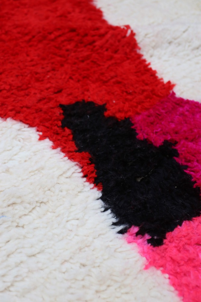 This Berber carpet called Azilal gets its name from the Azilal region in Morocco where it was handcrafted on a traditional wooden loom. Its patterns represent the weaver’s moods, loves, and sorrows at the time of creation. Once this colorful Berber carpet is created, she will make another one entirely different, based on her current emotions. Each piece is therefore unique.
