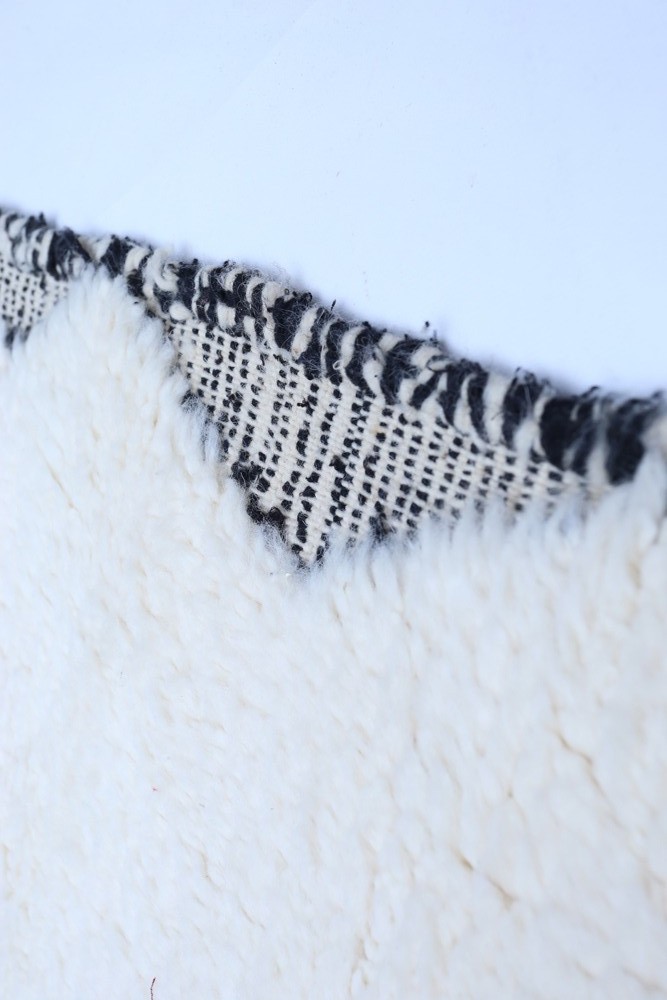 Beni Ouarain Carpet made of sheep wool handcrafted on a traditional loom in the Atlas Mountains of Morocco.