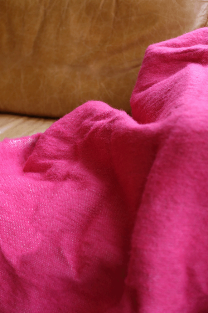 Berber plaid with fuchsia pink pompoms -