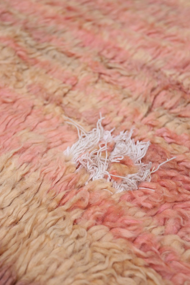 This Berber carpet called Azilal gets its name from the Azilal region in Morocco where it was handcrafted on a traditional wooden loom. Its patterns represent the weaver’s moods, loves, and sorrows at the time of creation. Once this colorful Berber carpet is created, she will make another one entirely different, based on her current emotions. Each piece is therefore unique.