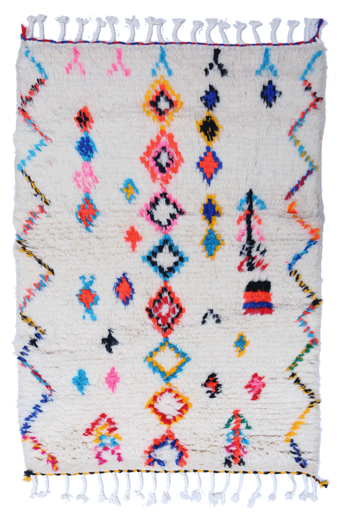 La alfombra bereber promedio no se parece a una simple alfombra industrial: es una pieza excepcional, un testimonio de la creatividad de la tejedora. Esta última utiliza tanto su historia como la historia de su tribu para crear diseños en la alfombra. Es lo que le da todo su encanto. En nuestra tienda en línea, cada alfombra está disponible en una sola pieza, elaborada de forma artesanal.. Seguramente encontrarás un modelo que te llamará la atención, ya sea por los colores utilizados o los patrones. Se adaptará perfecta y fácilmente a tu estilo decorativo, ya sea vintage, bohemio chic o contemporáneo. Con la multitud de diseños disponibles, tus preferencias personales quedarán satisfechas. Elige la alfombra bereber artesanal que se ajuste a tus necesidades en términos de proporciones, superficie y patrones.