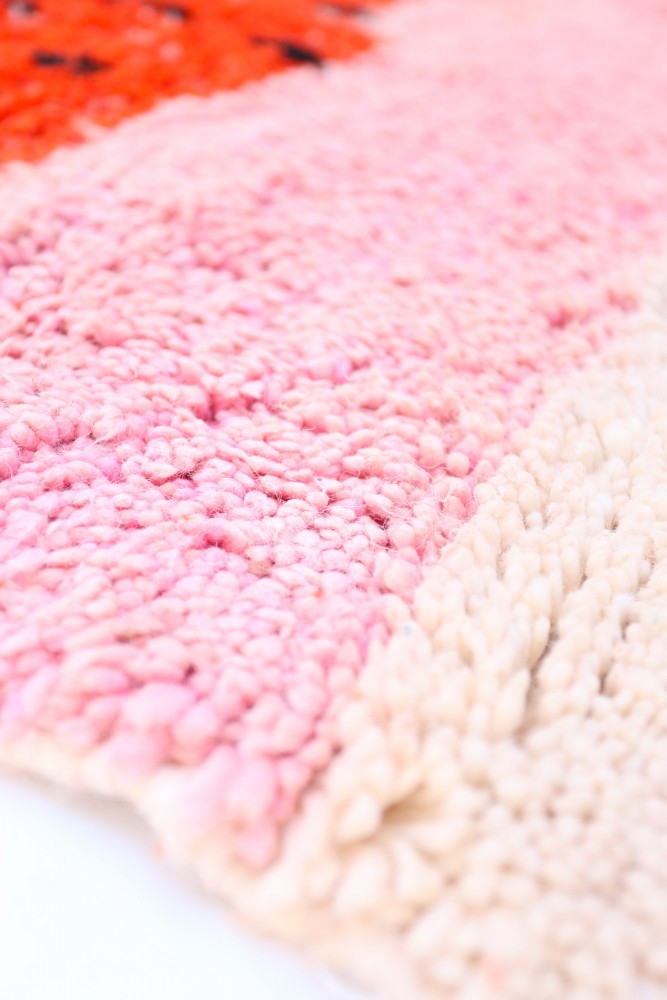 Tapis Azilal en lana de oveja, hecho a mano en un telar tradicional en las montañas del Atlas en Marruecos.