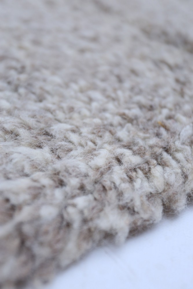 Para su cuidado, puedes pasar la aspiradora sobre ella una vez por semana como máximo para no dañar la lana. Si no puedes sacudirla, dale la vuelta durante unas horas una vez al mes, todas las partículas de polvo caerán en profundidad. En caso de mancha, simplemente golpea con un paño húmedo, a menudo es suficiente. De lo contrario, agrega vinagre de alcohol o jabón de Marsella con mucha agua.