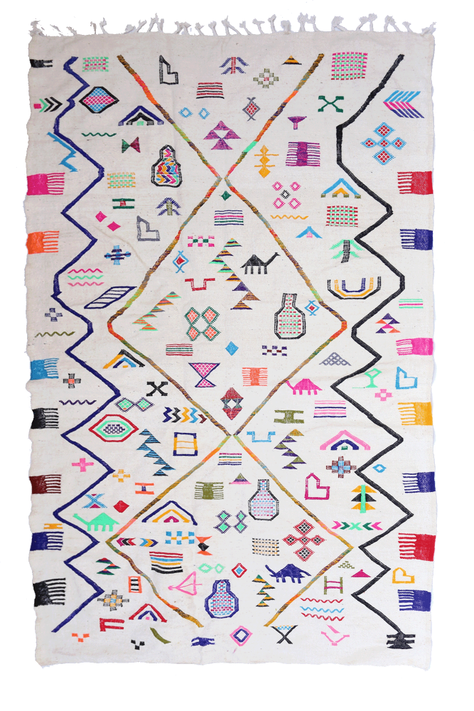 Un tapis berbère peut être de toutes les couleurs. Il est fabriqué à la main par des tisserandes marocaines, issues des tribus berbères de l’Atlas marocain : elles utilisent alors de la laine ou des chutes de tissu recyclées. Toujours dans le respect des techniques traditionnelles, elles utilisent leur culture, leur passé et leur histoire pour insuffler dans la vie dans leurs tapis. Le savoir-faire se transmet de génération en génération. Aucun tapis berbère vert ne se ressemblera : chaque tribu possède une technique de tissage et de fabrication qui lui est propre, avec des motifs variés. Ainsi, un tapis Azilal sera beaucoup plus coloré qu’un tapis Béni Ouarain. Le tapis Boucherouite est souvent riche en motifs comme le tapis Boujad, tandis que le tapis Kilim utilise des tons plus chauds et foncés comme le marron et l’orange. De par la qualité de fabrication et la résistance des matériaux utilisés, vous obtenez un tapis marocain de haute qualité. Le tapis est bien épais, confortable : il vieillit très bien, voire gagne en charme et en esthétisme au fil des ans.