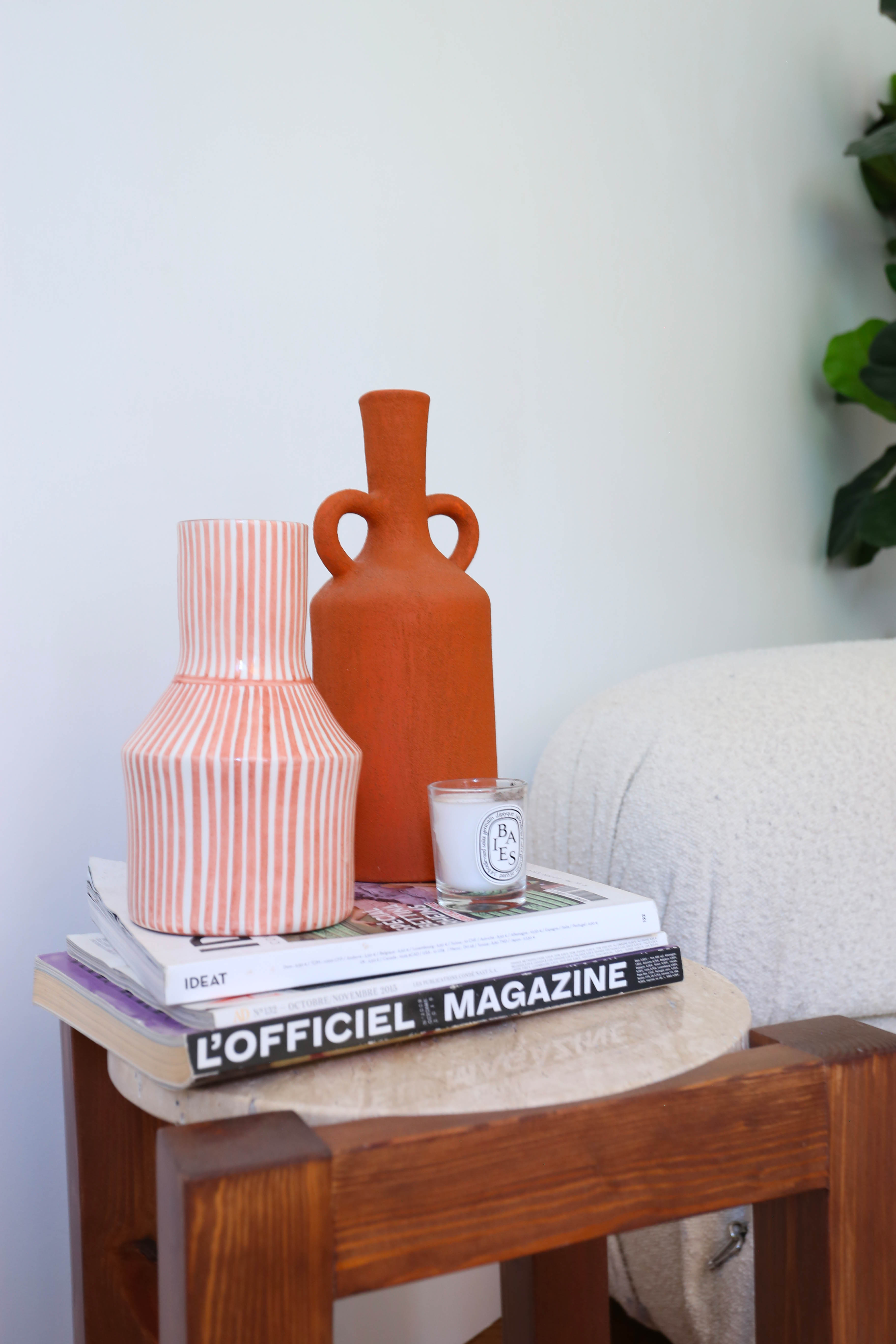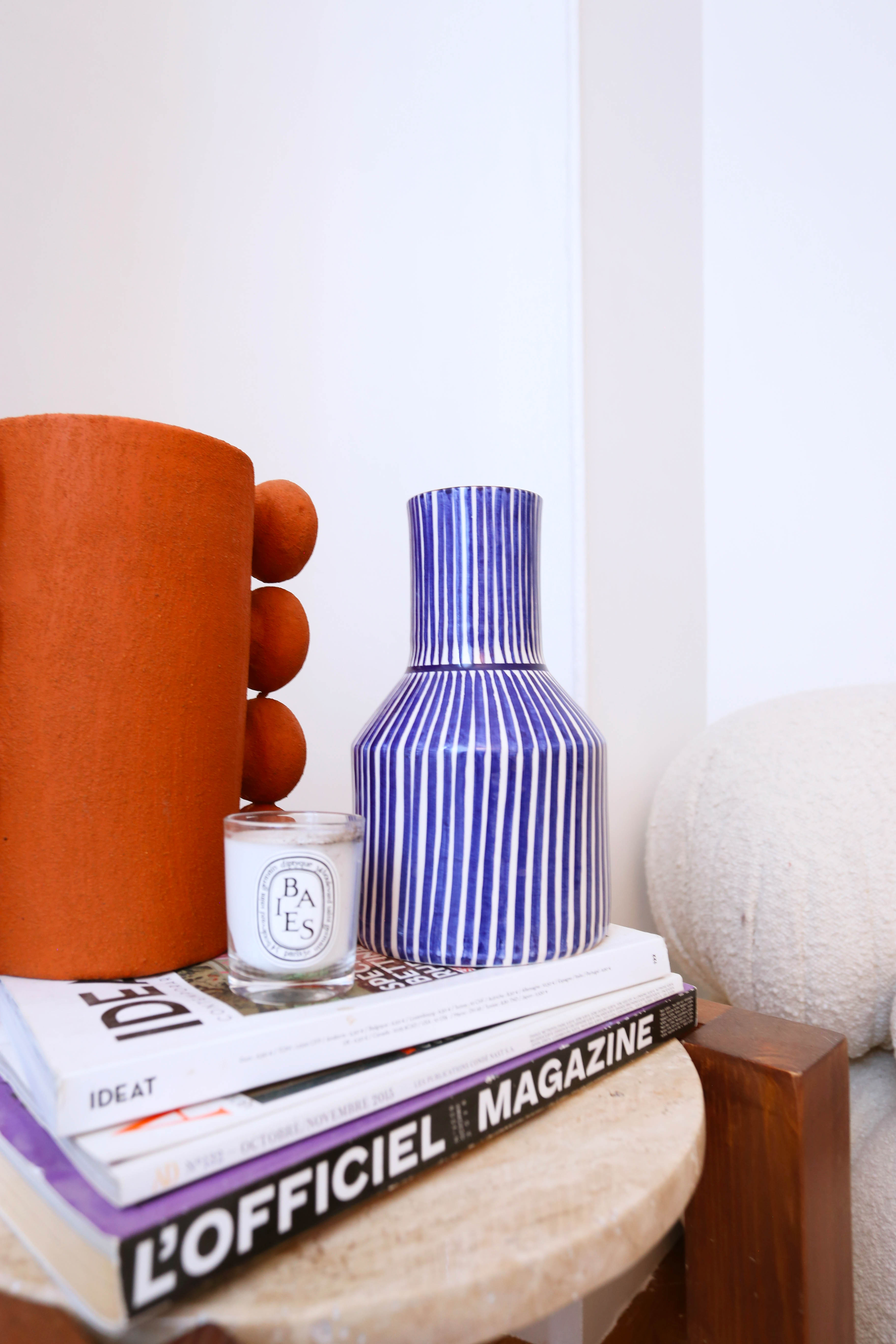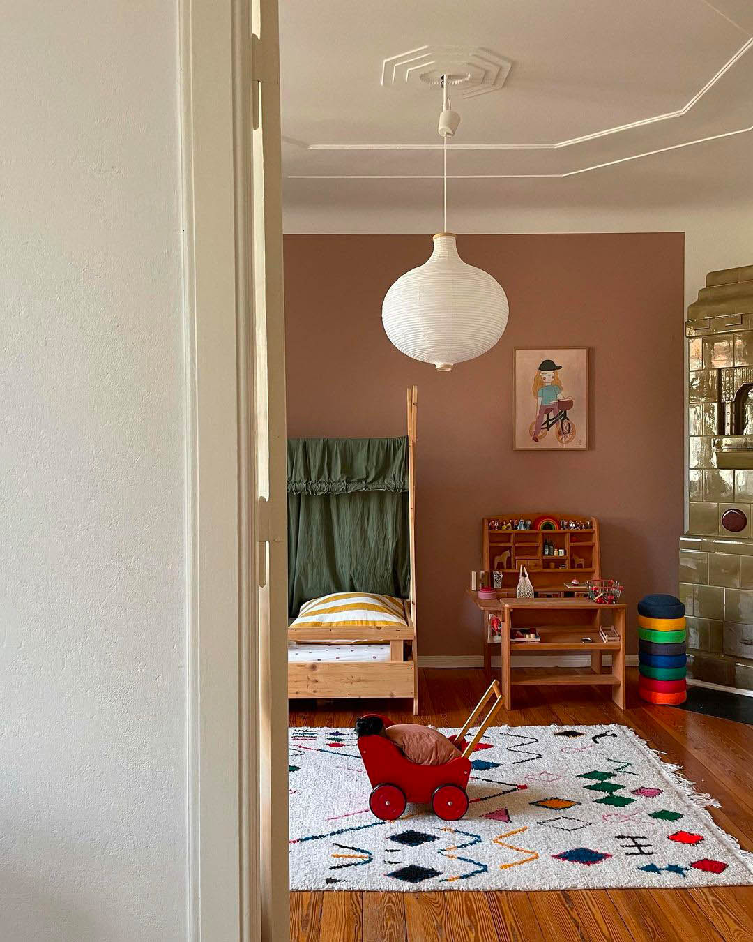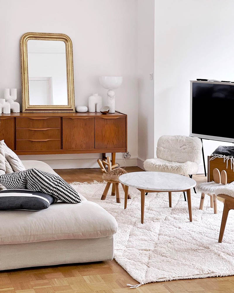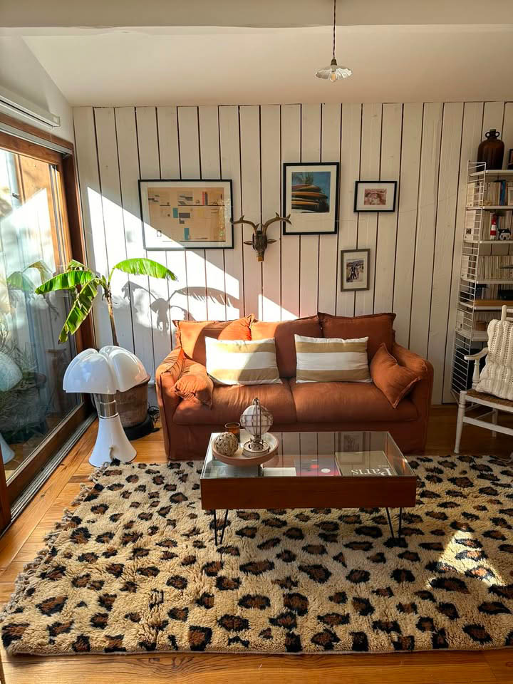 habillée de l'un de nos tapis Azilal aux motifs graphiques et modernes. Tout est si joli !