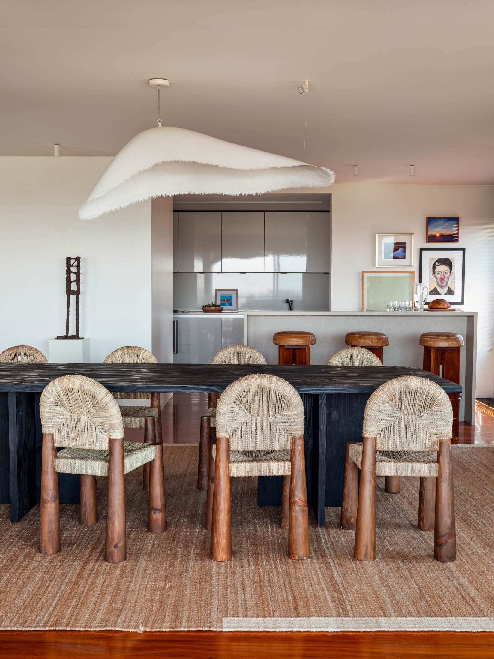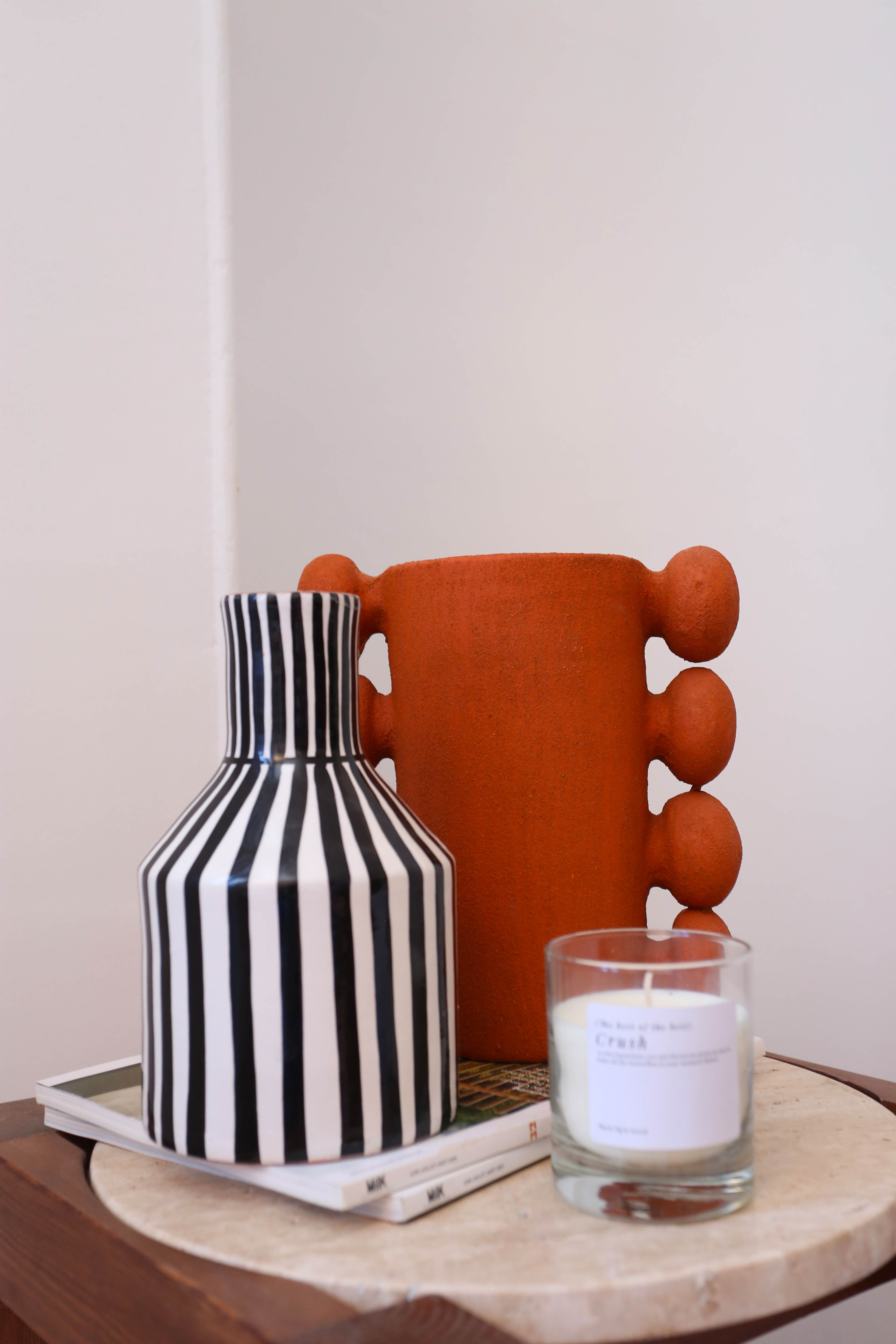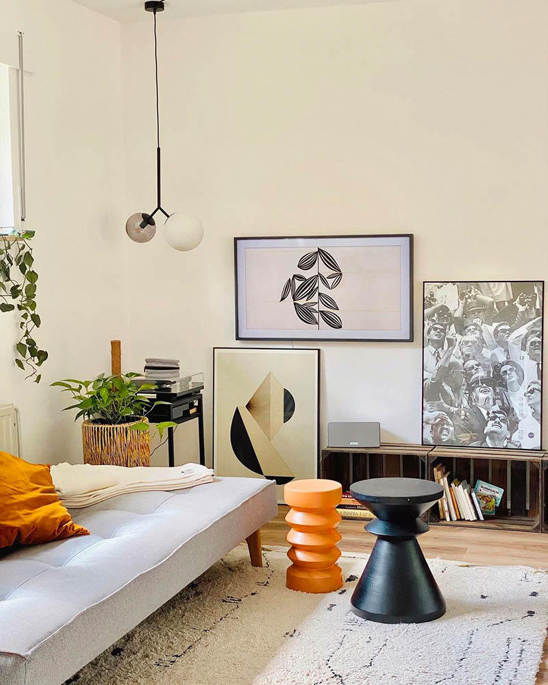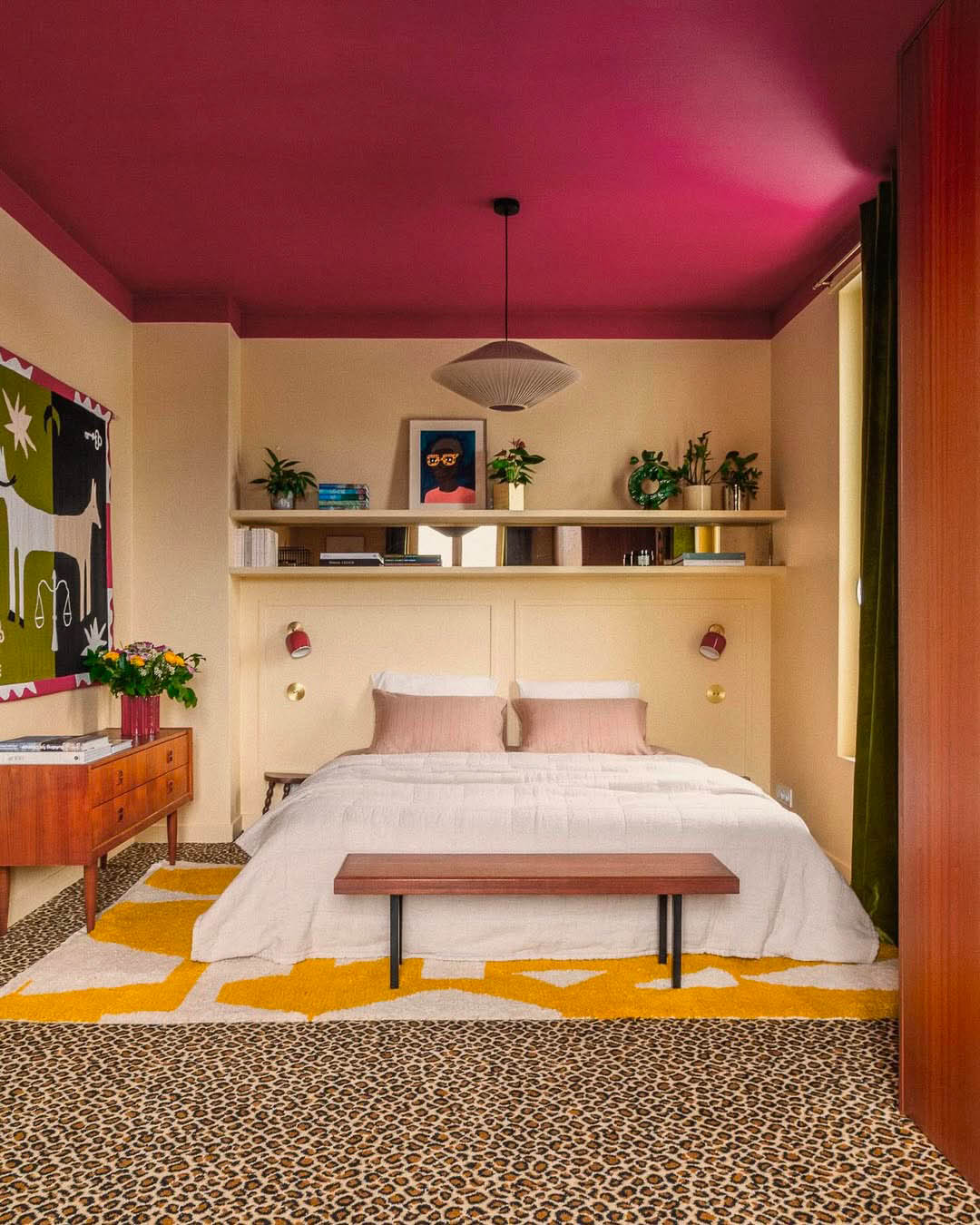 habillée de l'un de nos tapis Azilal aux motifs graphiques et modernes. Tout est si joli !