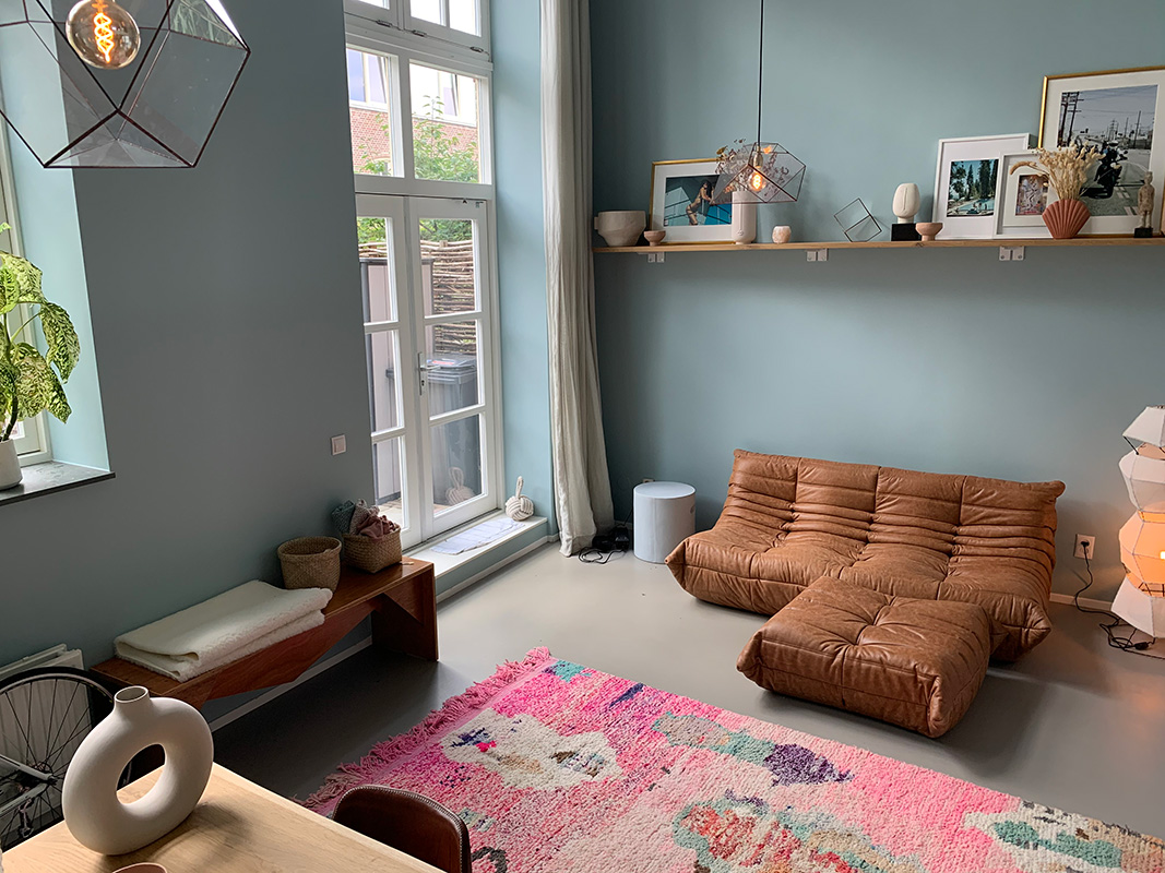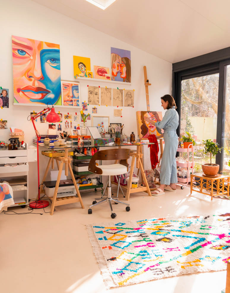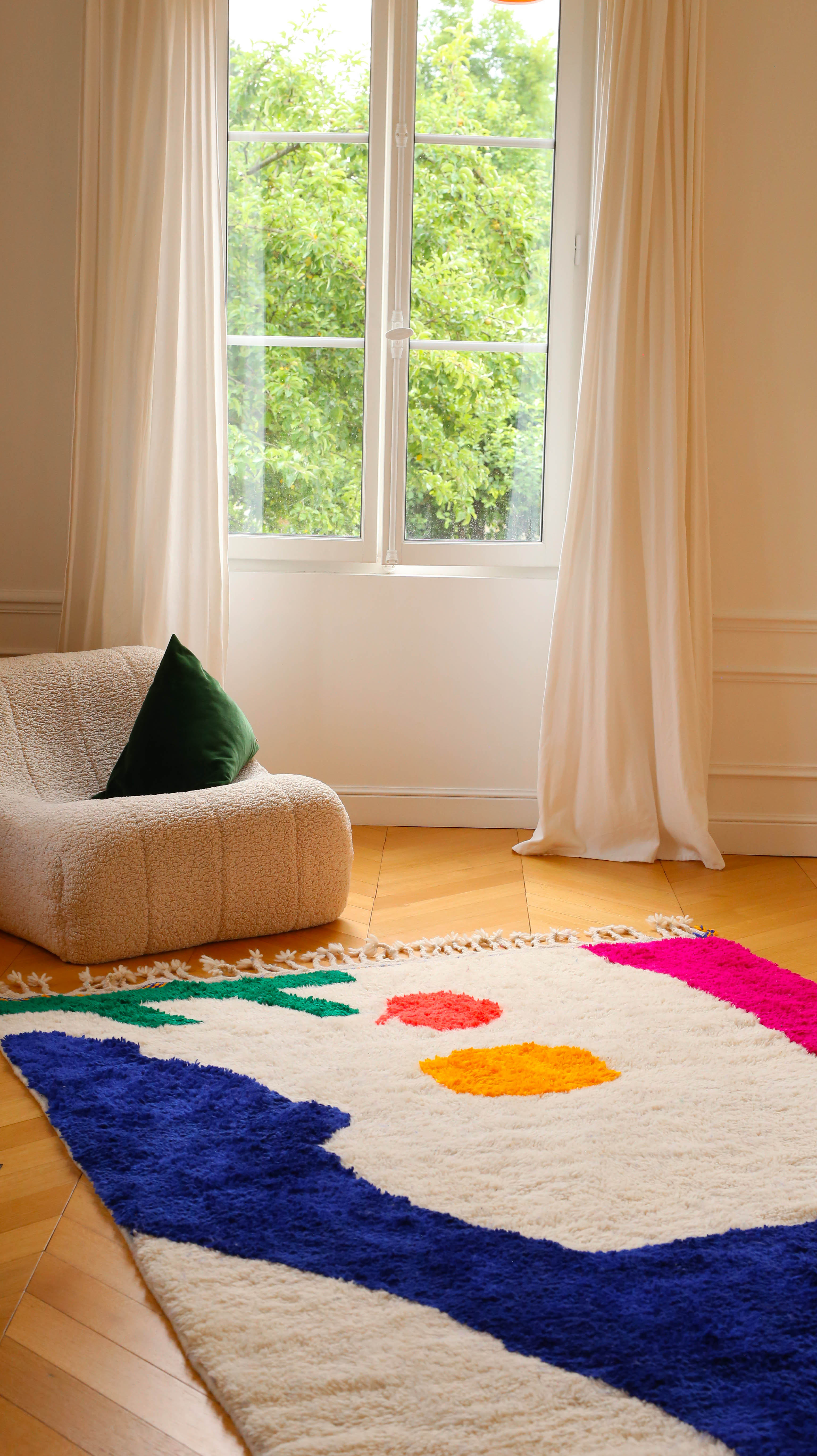 « Ce tapis s’accorde parfaitement aux couleurs de mon atelier. Il apporte la lumière, la douceur et la touche colorée que je recherchais. Je l’adore. »