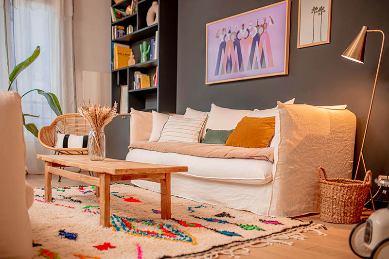 ainsi que leurs inspirants intérieurs habillés de tapis marocains achetés sur le site ou confectionnés sur-mesure