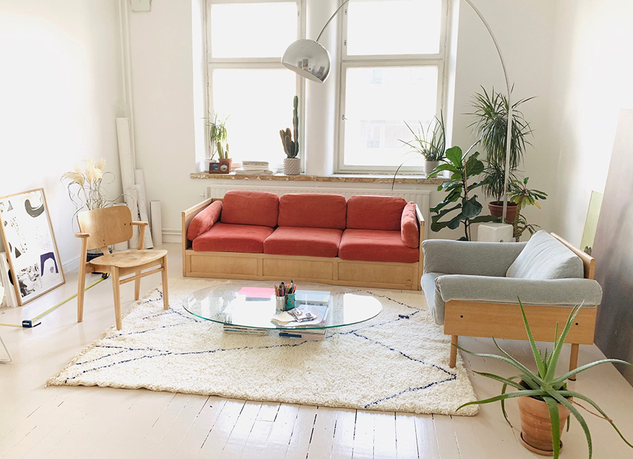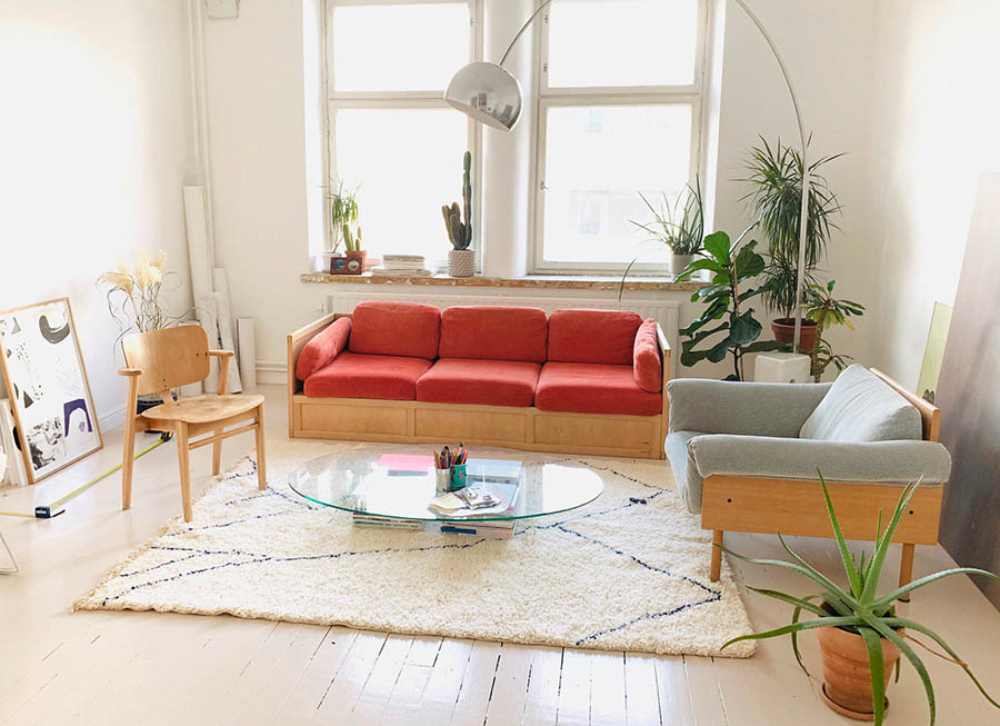 « Ce tapis s’accorde parfaitement aux couleurs de mon atelier. Il apporte la lumière, la douceur et la touche colorée que je recherchais. Je l’adore »