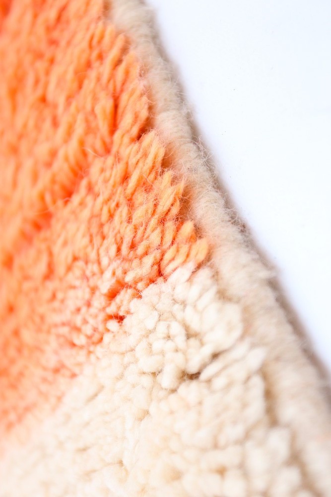 Tapis Azilal en laine de mouton confectionné à la main sur un métier à tisser traditionnel dans les montagnes de l'Atlas au Maroc.