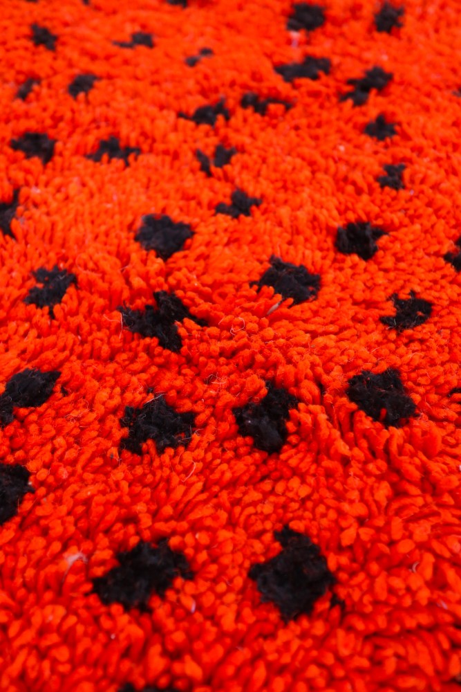 Ce tapis berbère que l'on appelle Azilal tient son nom de la région d'Azilal au Maroc où il a été confectionné à la main sur un métier à tisser traditionnel en bois. Ses motifs représentent les humeurs, les amours, les peines de la tisseuse au moment de sa création. Une fois ce tapis berbère coloré créé, elle en confectionnera un autre totalement différent, en fonction de ses émotions du moment. Chaque pièce est donc unique.