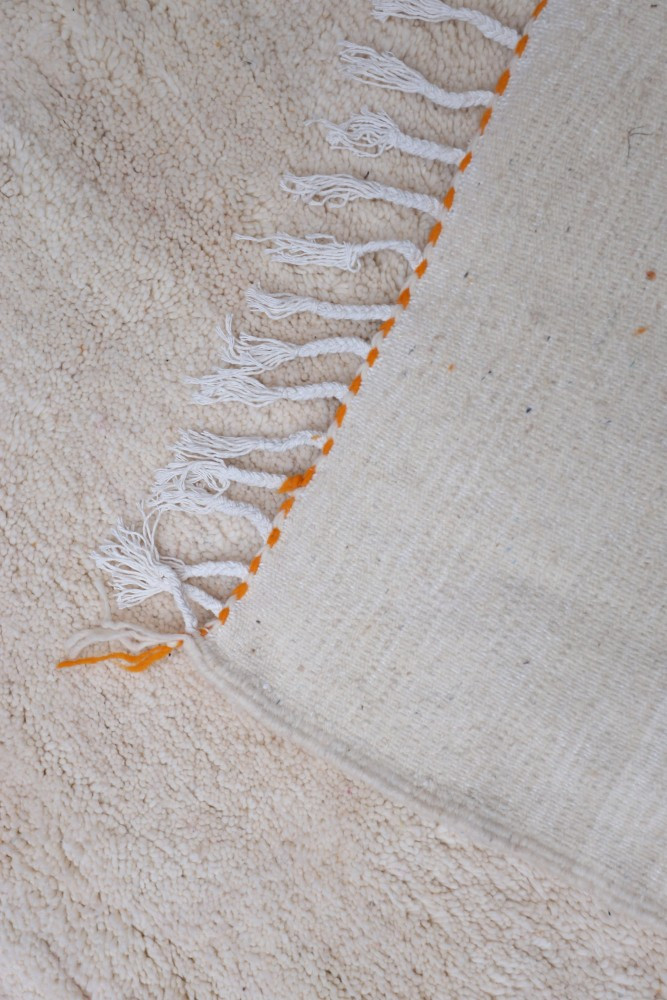Nos tapis avec un fond blanc et des dessins colorés sont toujours avec un fond blanc en laine. Les couleurs peuvent être soit en coton soit en laine. Les couleurs très vives sont généralement en coton et les couleurs qui ont un rendu plus naturel sont elles en laine. Nos tapis qui sont tout colorés sont eux 100% en laine.