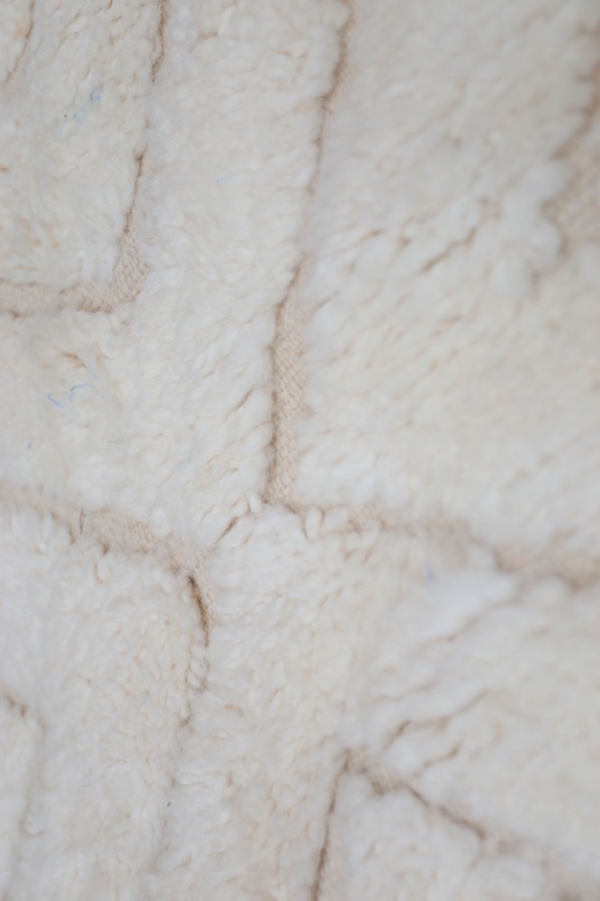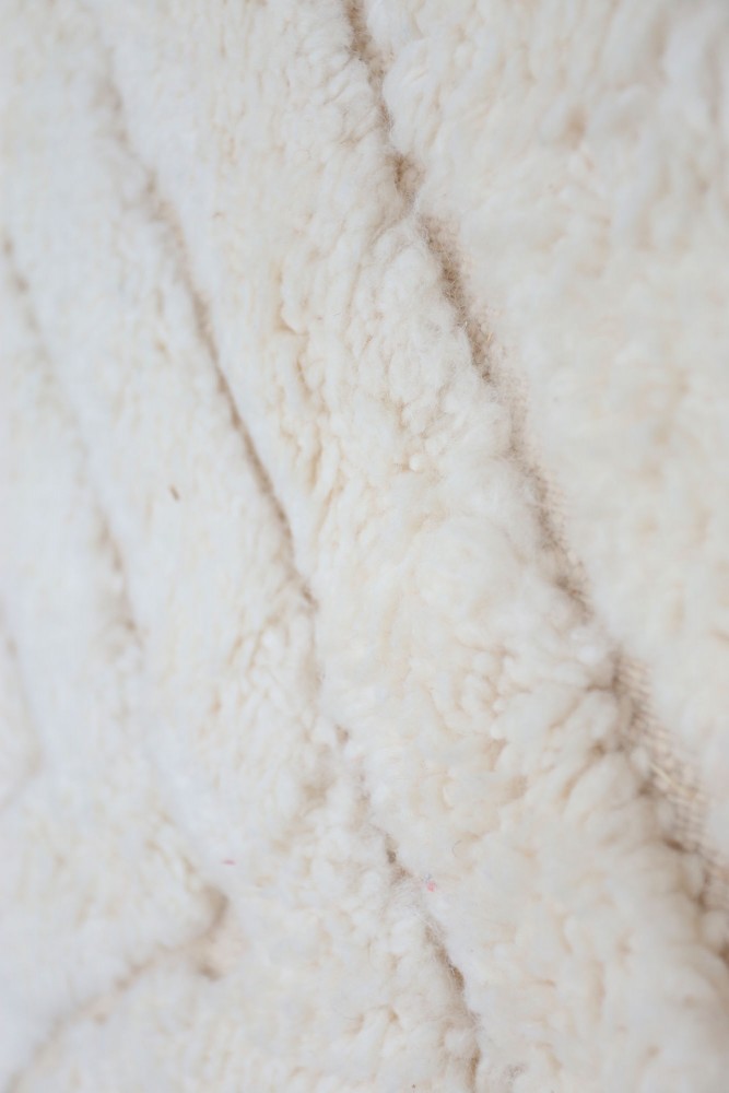 Très grand tapis berbère Béni Ouarain blanc uni avec des losanges gravés
