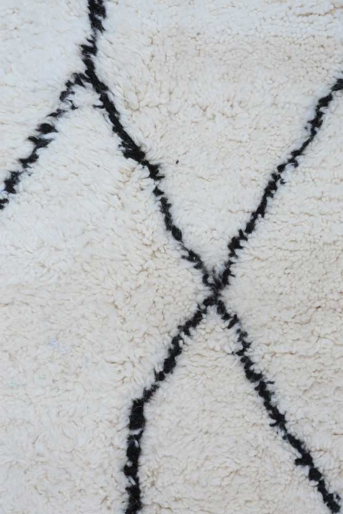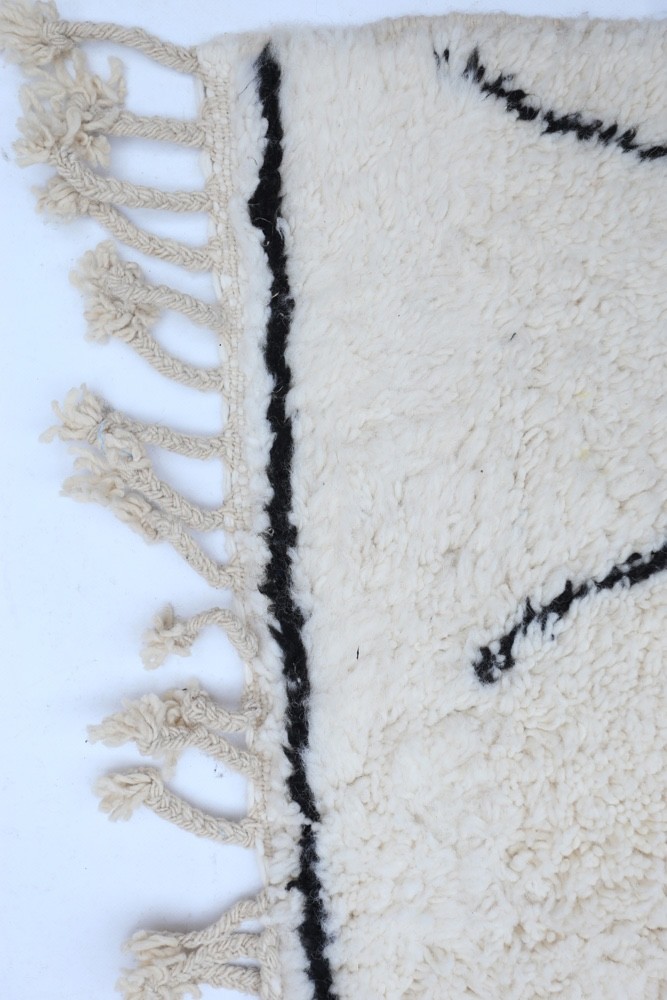 Tapis berbère Béni Ouarain blanc avec lignes asymétriques en noir Tapis en pré-commande - Choisissez votre dimension