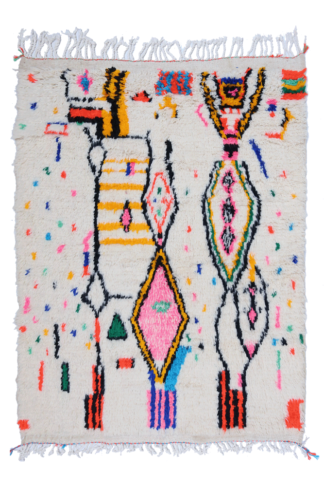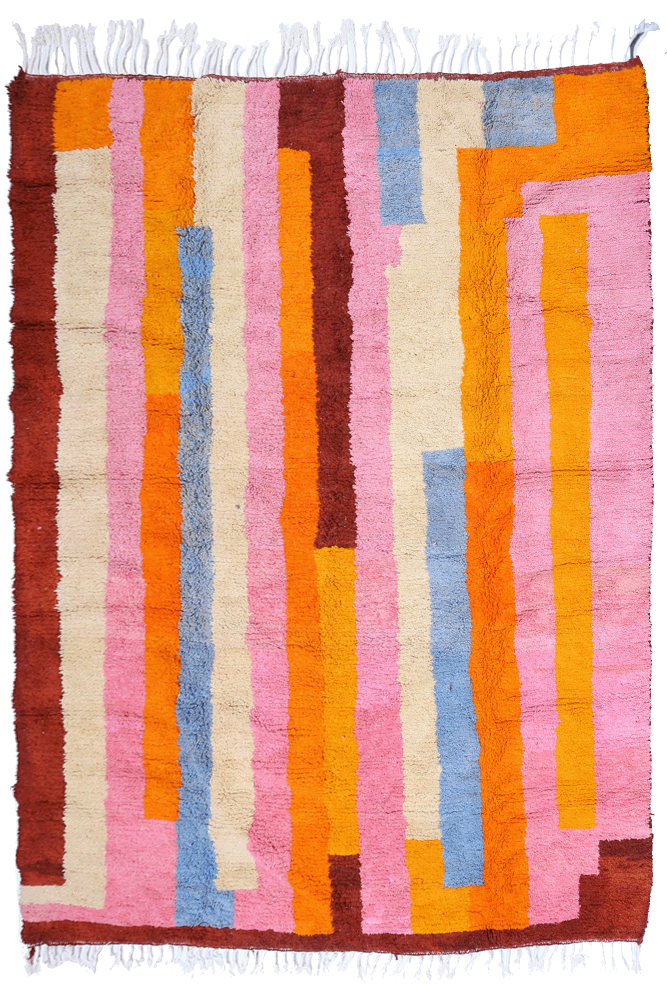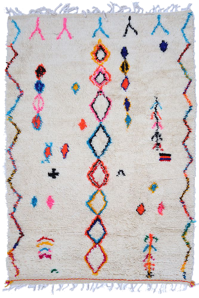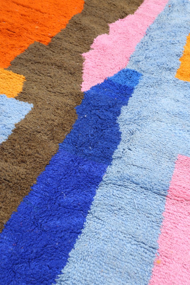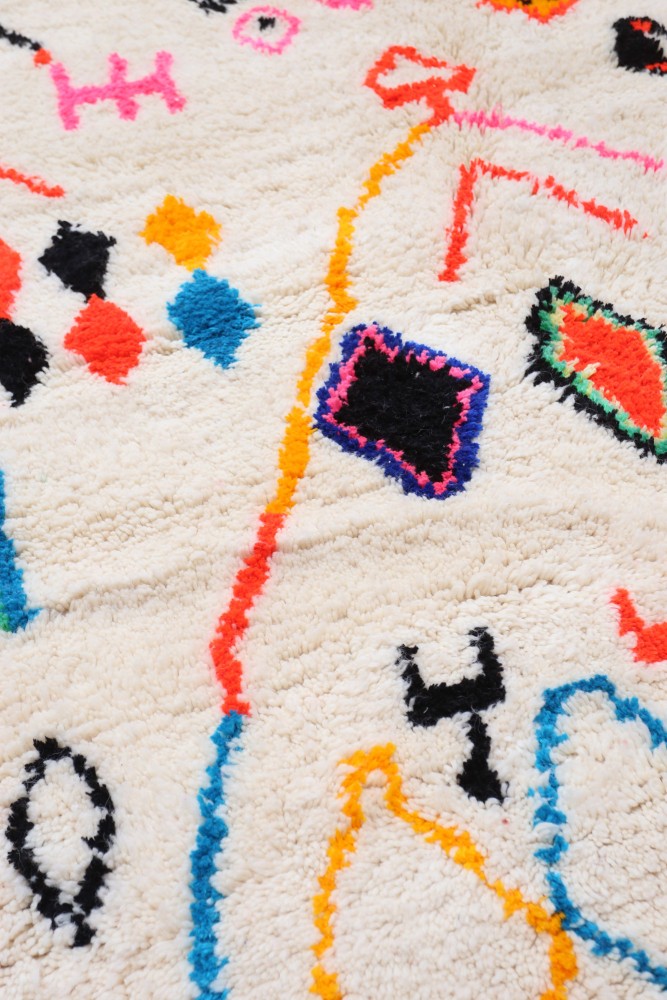 I tappeti Azilal prendono il loro nome dalla regione di Azilal in Marocco, dove vengono realizzati a mano su telai tradizionali in legno. Le tessitrici esprimono i loro umori attraverso disegni astratti e simboli berberi rappresentati sul tappeto.