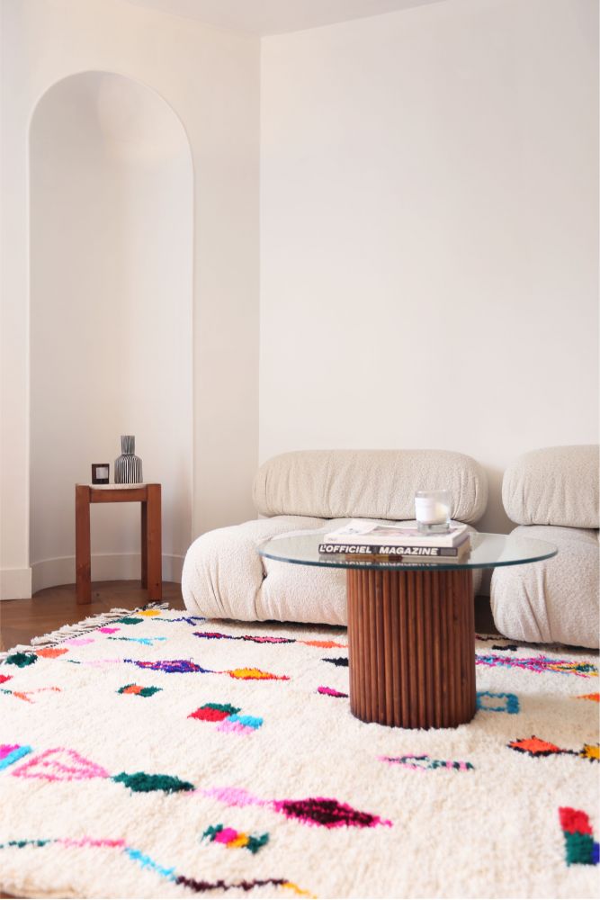 I'm sorry, but the text you provided is incomplete. Could you please provide more context or the full sentence you would like me to translate from French to Italian?tappeto AzilalProviene da una tribù della regione rocciosa e alta di Azilal, situata sulle montagne dell'Alto Atlante. Questo tappeto berbero rosso presenta numerosi motivi astratti con diversi simboli berberi. Questo tappeto, sia a pelo lungo che corto, mette in risalto il colore, spesso su sfondo beige, bianco o avorio.Puoi trovare modelli che valorizzano il colore rosso con motivi geometrici che simboleggiano la fertilità, la protezione, la natura, la fortuna o il focolare.(i motivi saranno principalmente a losanga, si trovano meno tappeti berberi a pois per la tribù Azilal). Questi modelli di tappeti marocchini sono spesso associati atappeti berberi fluorescentiPer via della loro miscela di colori vivaci e sfavillanti.