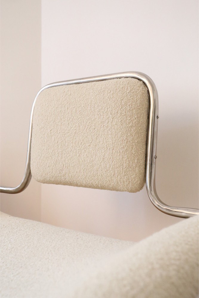 Poltrona in lana bouclé e acciaio inossidabile -