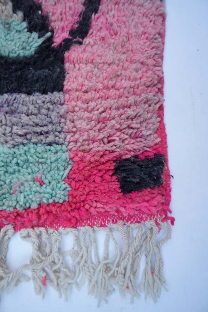 Questo tappeto berbero chiamato Azilal prende il nome dalla regione di Azilal in Marocco, dove è stato realizzato a mano su un telaio tradizionale in legno. I suoi motivi rappresentano gli stati d'animo, gli amori, i dolori della tessitrice al momento della sua creazione. Una volta che questo tappeto berbero colorato è stato creato, ne creerà un altro completamente diverso, in base alle sue emozioni del momento. Ogni pezzo è quindi unico.