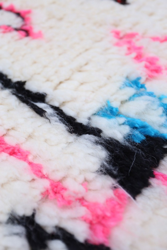 Tappeto Azilal in lana di pecora realizzato a mano su un telaio tradizionale nelle montagne dell'Atlante in Marocco.