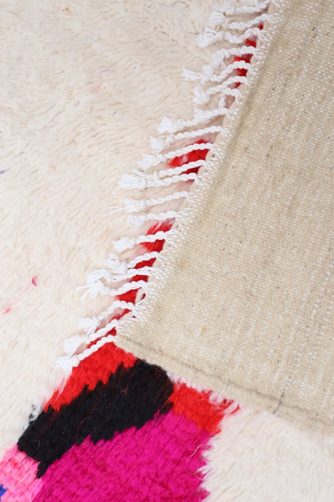 Tappeto Azilal in lana di pecora realizzato a mano su un telaio tradizionale nelle montagne dell'Atlante in Marocco.