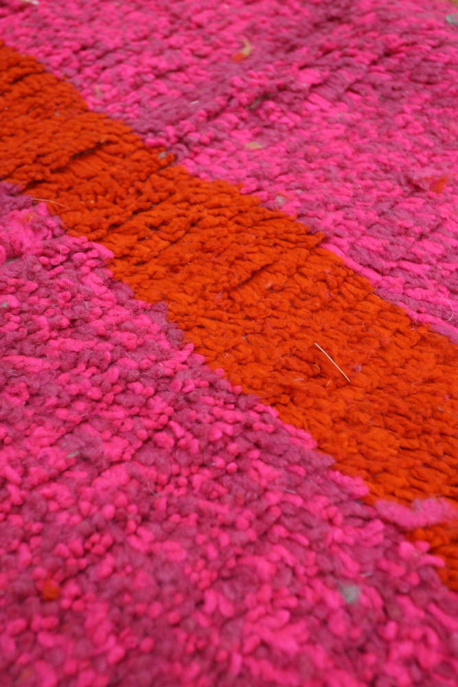 Questo tappeto berbero chiamato Azilal prende il nome dalla regione di Azilal in Marocco, dove è stato realizzato a mano su un telaio tradizionale in legno. I suoi motivi rappresentano gli stati d'animo, gli amori, i dolori della tessitrice al momento della sua creazione. Una volta che questo tappeto berbero colorato è stato creato, ne creerà un altro completamente diverso, in base alle sue emozioni del momento. Ogni pezzo è quindi unico.