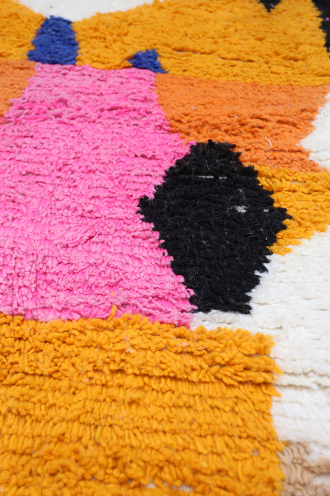 Questo tappeto berbero chiamato Azilal prende il nome dalla regione di Azilal in Marocco, dove è stato realizzato a mano su un telaio tradizionale in legno. I suoi motivi rappresentano gli stati d'animo, gli amori, i dolori della tessitrice al momento della sua creazione. Una volta che questo tappeto berbero colorato è stato creato, ne creerà un altro completamente diverso, in base alle sue emozioni del momento. Ogni pezzo è quindi unico.