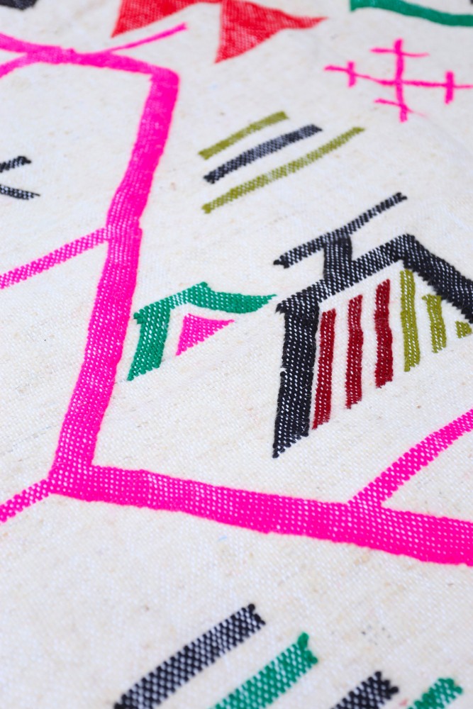 Tappeto Kilim in lana realizzato a mano su un telaio tradizionale nelle montagne dell'Atlante in Marocco.