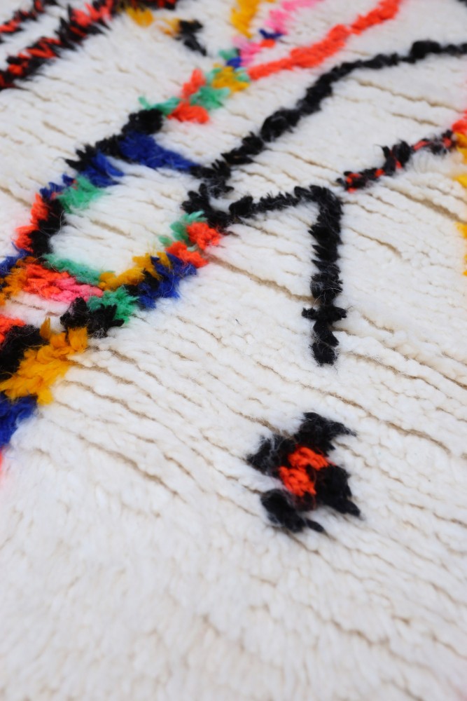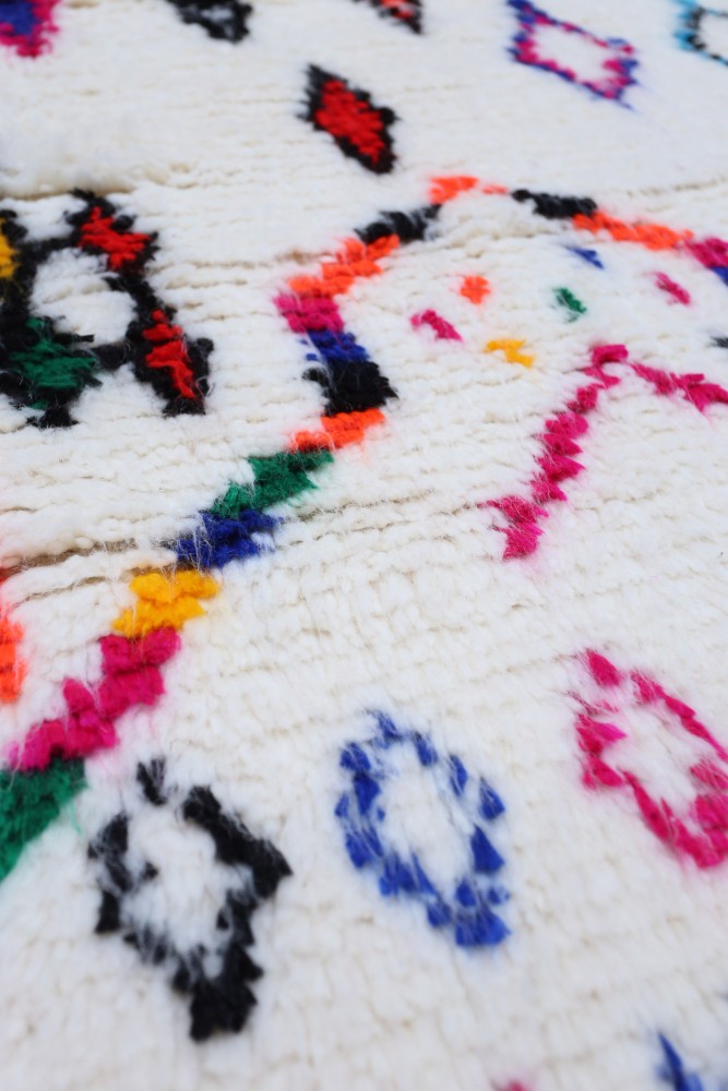 Liefhebber van felle kleuren en speelse patronen? Dan zul je worden verleid door de Azilal tapijt. Het is een echte decoratieve troef voor je leefruimte: de abstracte ontwerpen bevatten Berberse symbolen. Deze tapijten zijn gemaakt van gerecycled textiel en ruwe wol. Ze kunnen zowel langharig als kortpolig zijn. De motieven en grafische ontwerpen komen vooral goed tot hun recht op een crème, witte of ecru achtergrond.