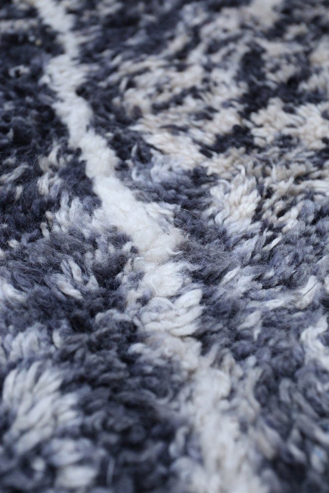 Dit Berber-tapijt, genaamd Azilal, dankt zijn naam aan de regio Azilal in Marokko waar het met de hand is geweven op een traditioneel houten weefgetouw. De motieven vertegenwoordigen de stemmingen, liefdes en verdriet van de weefster op het moment van creatie. Nadat dit gekleurde Berber-tapijt is gemaakt, zal ze een ander, volledig verschillend tapijt maken, afhankelijk van haar emoties op dat moment. Elk stuk is dus uniek.