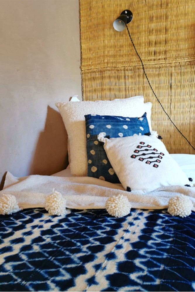 Indigo geverfde Bogolan stof uit Mali.