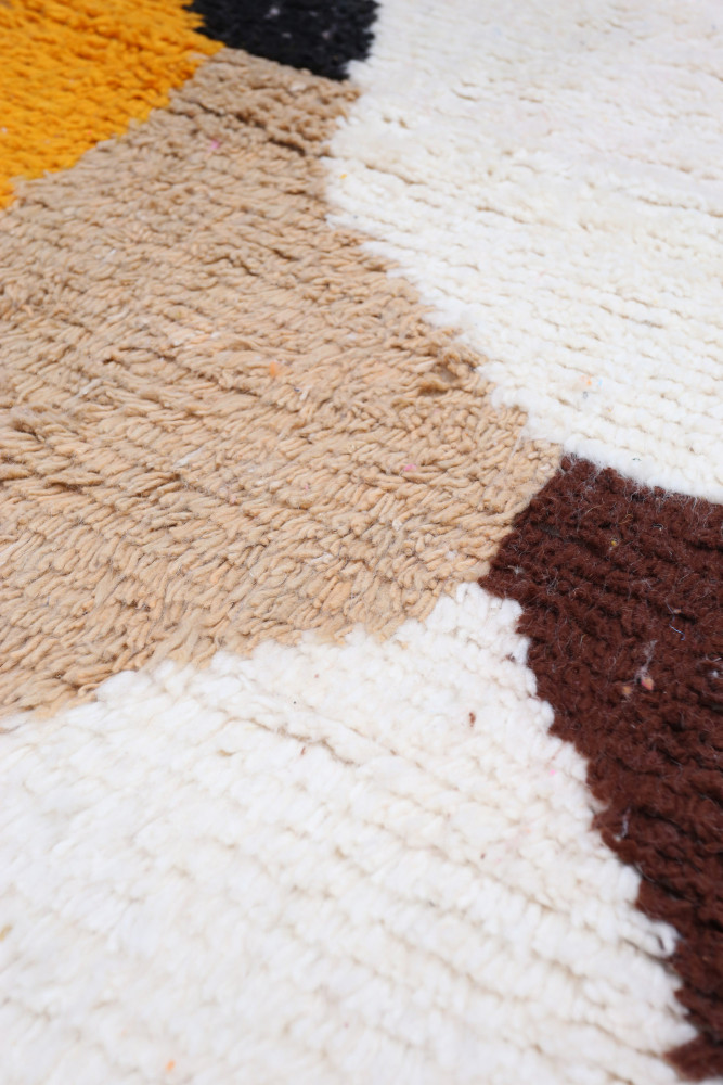 Tapijt Azilal gemaakt van schapenwol, met de hand geweven op een traditioneel weefgetouw in de bergen van de Atlas in Marokko.